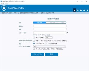 設定画面が表示されますので、オフィスネットワークへの接続情報を設定します。