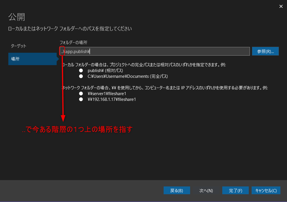 保存場所は相対パスで新しくフォルダーを作成して保存するようにします。