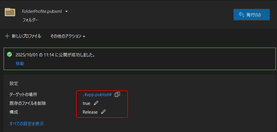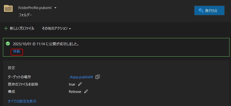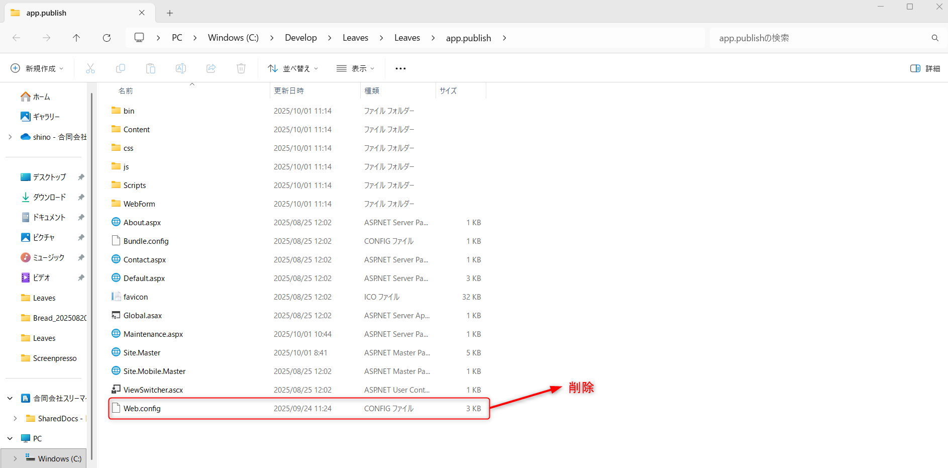 最新のapp.publishのフォルダに移動するので、2回目以降はこのフォルダのWeb.configを削除します。