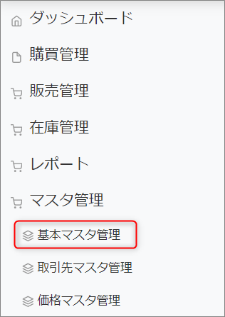 ダッシュボード・マスタ管理から基本マスタ管理を選択します。