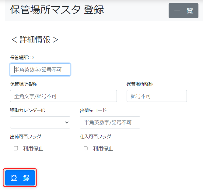 保管場所マスタメンテナンスの新規登録方法を説明します。