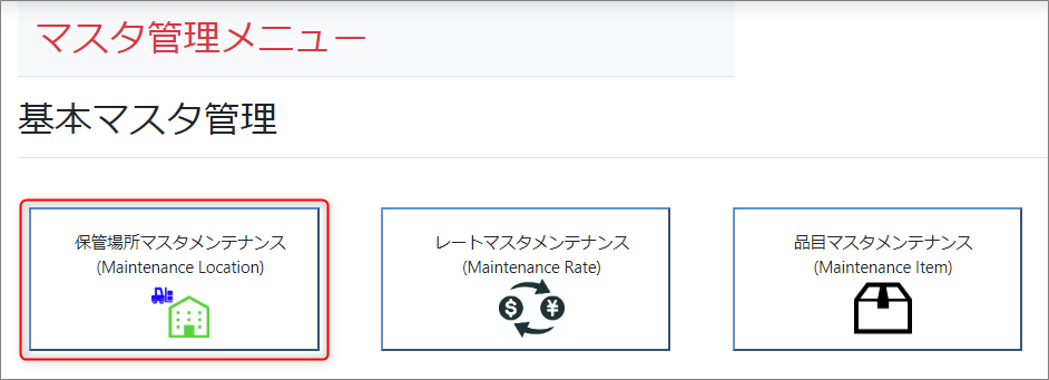 右側にメニューが表示されますので、保管場所マスタメンテナンスを選択します。