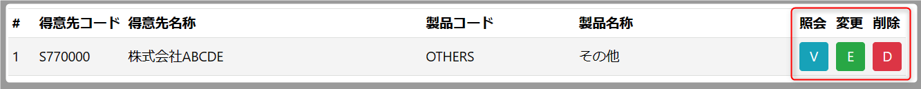 検索条件に当てはまる得意先が一覧で表示されますので、照会・変更・削除から該当ボタンをクリックして処理を進めます。