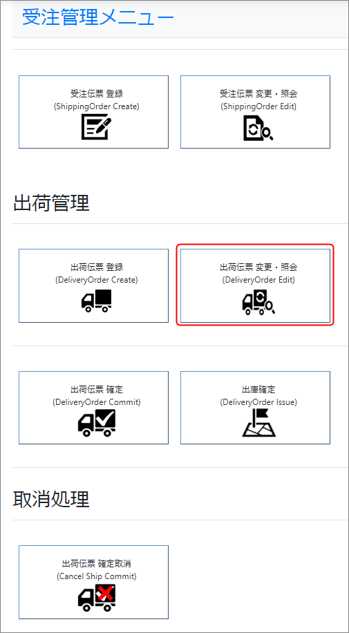 受注管理メニュー/出荷管理から『出荷伝票変更・照会』を選択します。