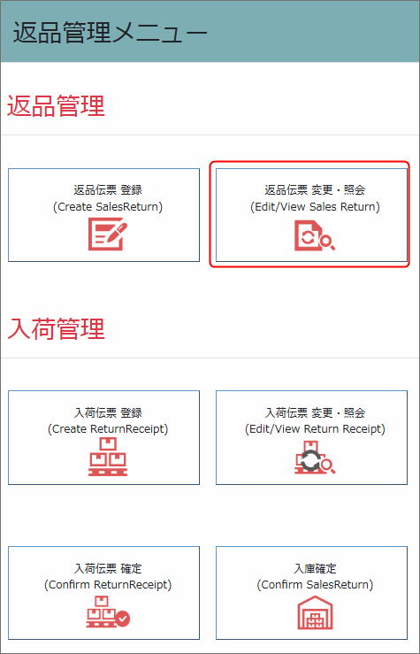 登録済み返品伝票の変更・照会、削除方法を説明します。