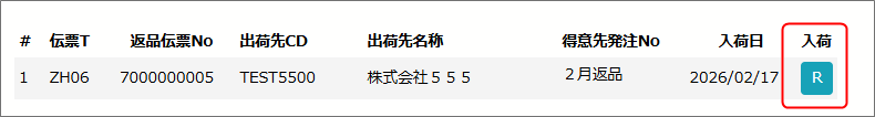 一覧から、入荷したい明細行の右端 『Rボタン』をクリックします。