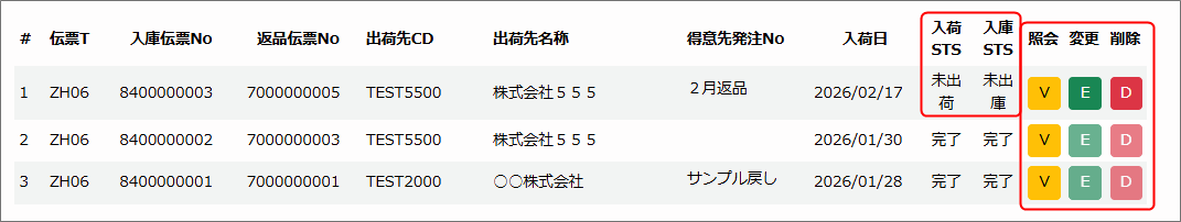 出荷・出庫 STS(ステータス)が【未完了】のものだけが変更・削除可能です。