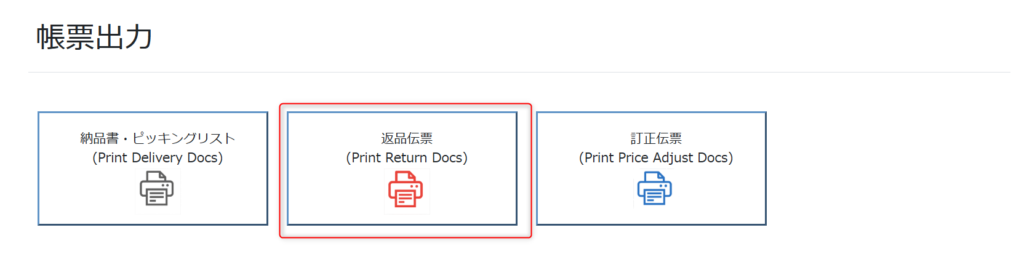 返品伝票・返品チェックリストの印刷方法を説明します。