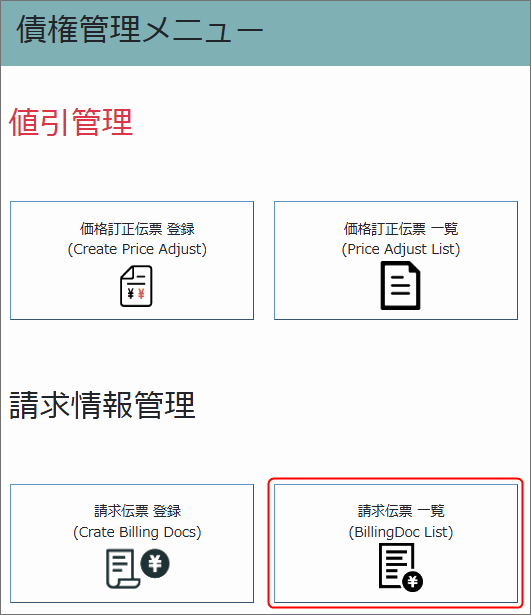 債権管理画面の請求伝票一覧を選択します。
