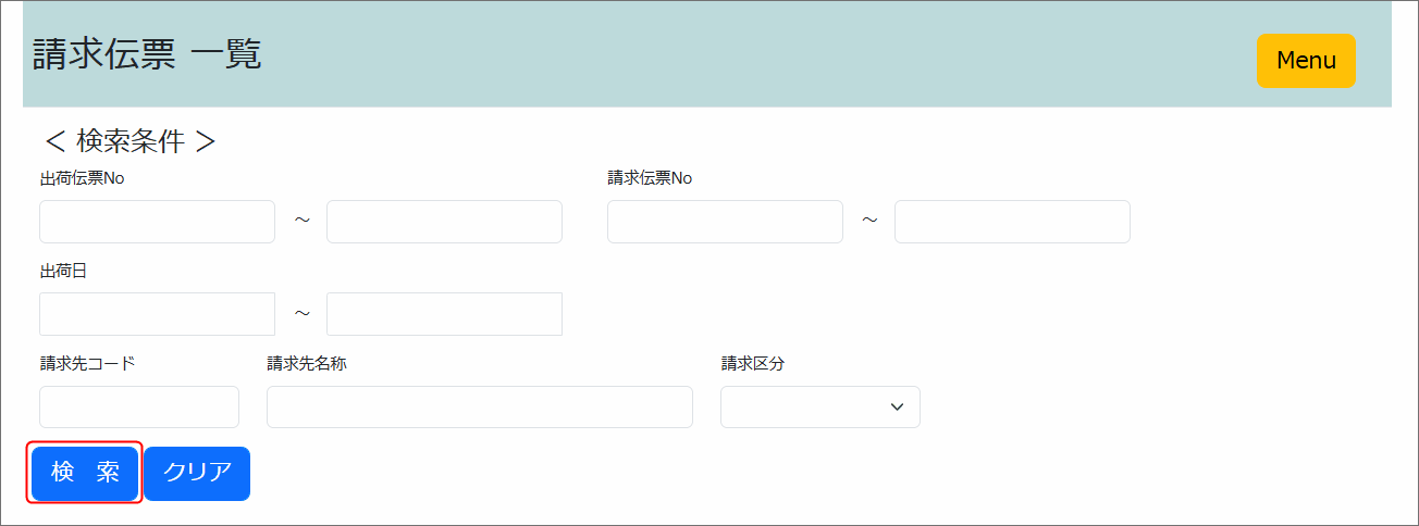 検索条件を入力して該当の伝票を検索します。