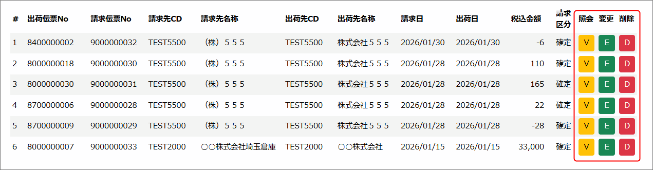 検索条件に当てはまる受注伝票が一覧で表示されるので、該当ボタンを押して処理を進めます。