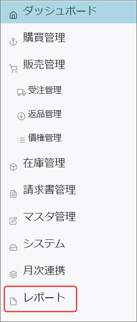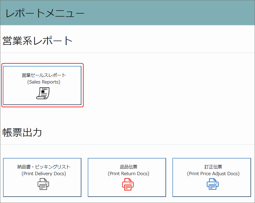 右側のメニューから、営業セールスレポートを選択します。