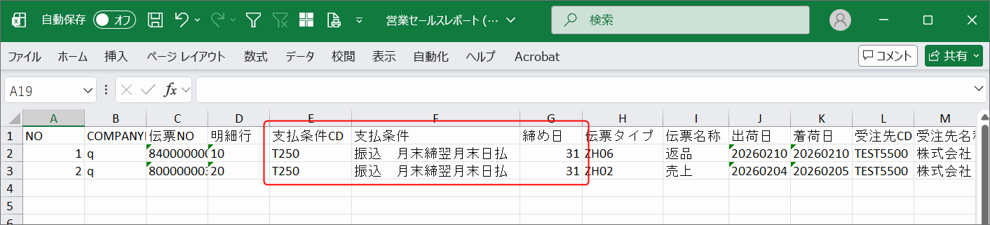 検索条件に該当する営業セールスデータが一覧で表示されます。