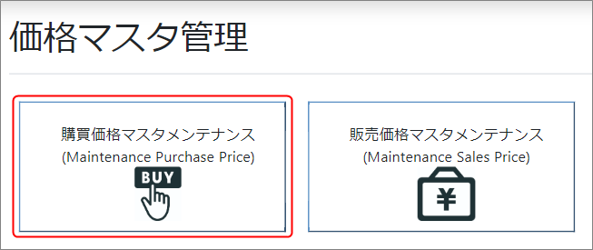 右側のメニューから、購買価格マスタメンテナンスを選択します。