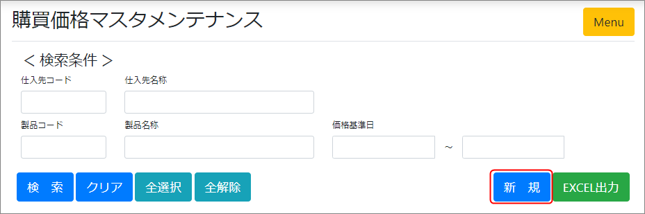 購買価格マスタメンテナンスの新規登録方法を説明します。