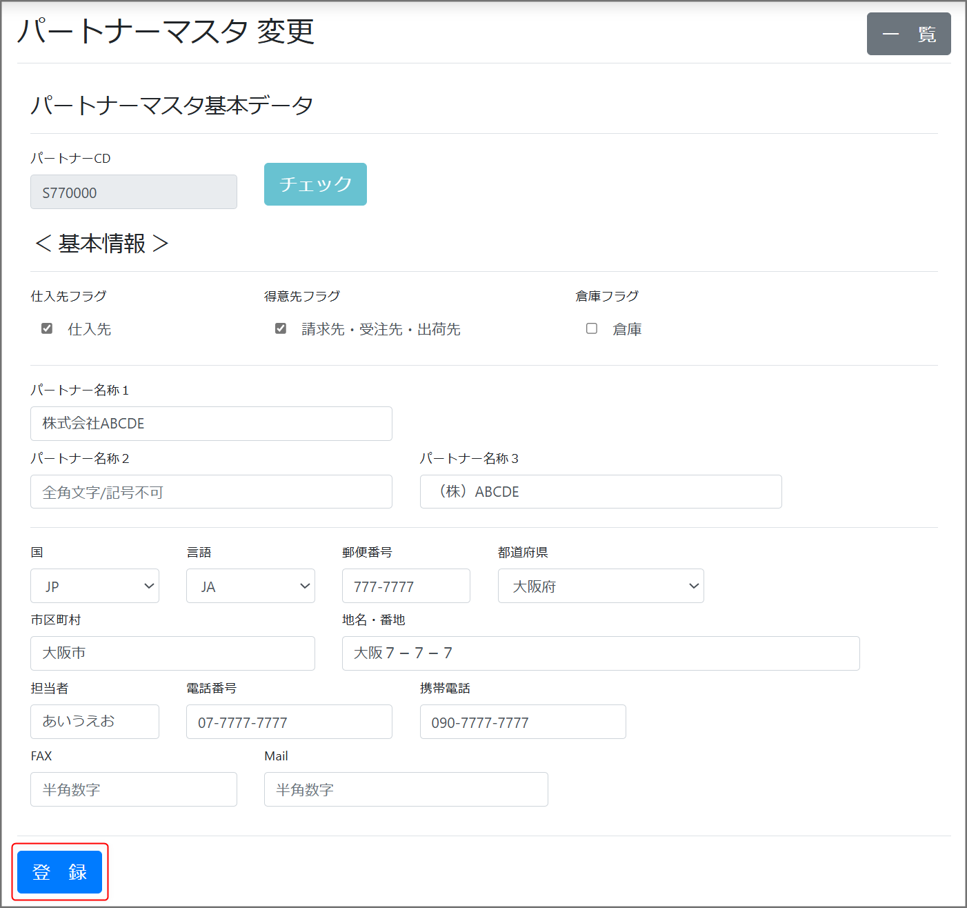 変更及び削除の場合は、登録ボタンをクリックします。