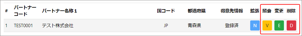 検索条件に当てはまる得意先が一覧で表示されますので、照会・変更・削除から該当ボタンをクリックして処理を進めます。