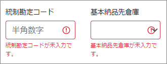 入力内容にエラーがある場合は、該当入力欄にメッセージが表示されますので修正して登録してください。