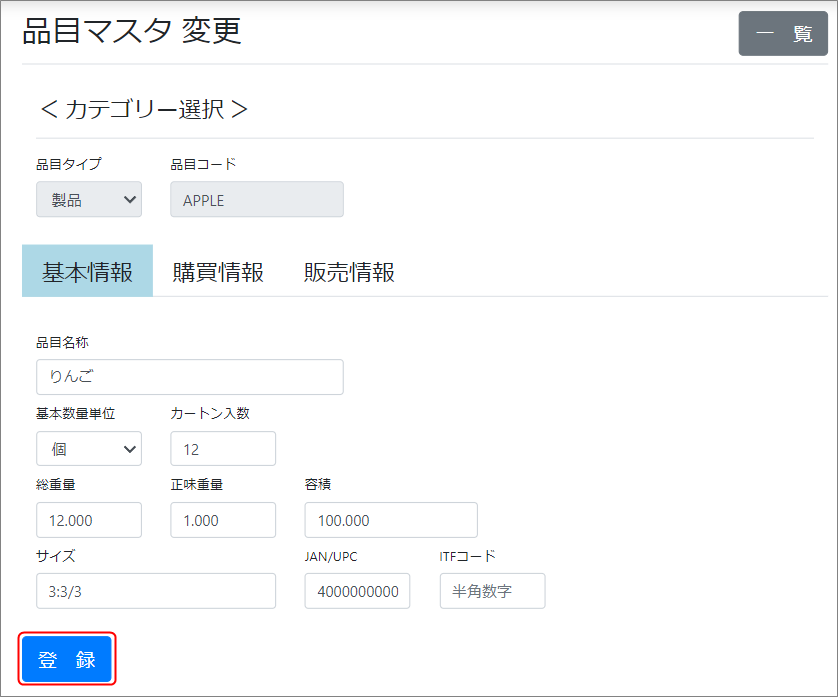 変更及び削除の場合は、登録ボタンをクリックします。