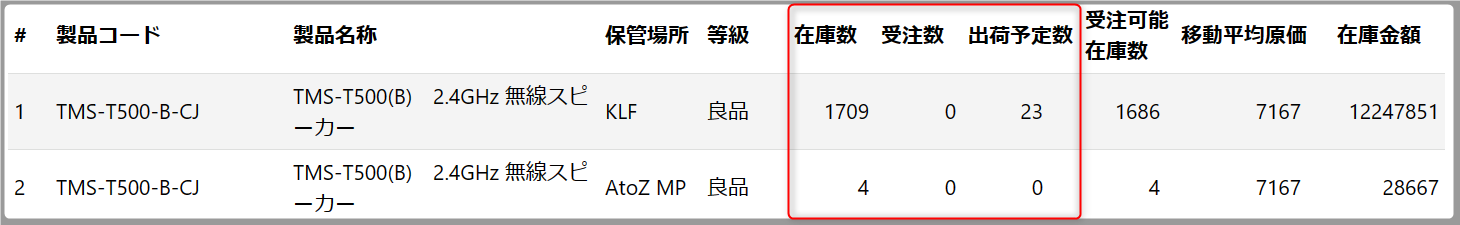 在庫照会画面【出庫確定後】