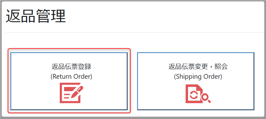 右側にメニューが表示されますので、返品伝票登録を選択します。